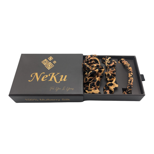 Leopard Pattern Pure Silk Scrunchies