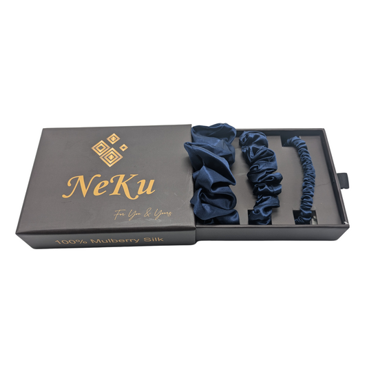 Navy Pure Silk Scrunchies