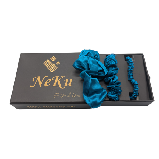 Peacock Blue Pure Silk Scrunchies