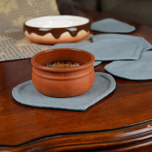 Introducing our premium coaster collection: crafted from exquisite upholstery fabrics, each coaster adds a distinctive touch to your dining or coffee table.